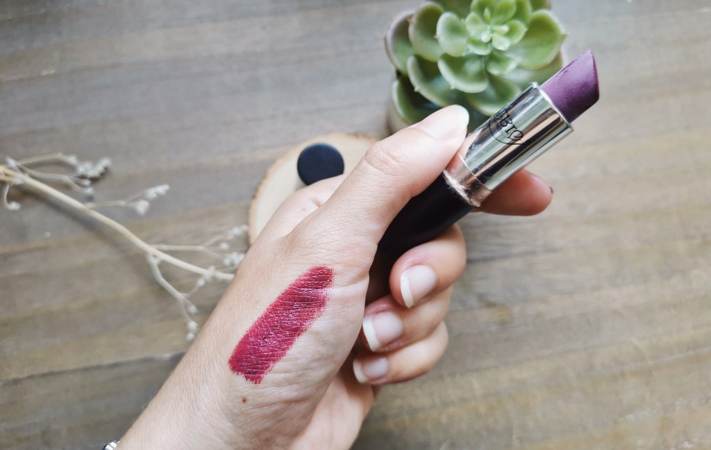 C’est un rouge à lèvres mat, totalement couvrant, confortable à la finition parfaitement « Métallique » . Ce produit est composé à base d’huile de ricin bio, ce qui permet d’hydrater les lèvres malgré que celui-ci soit effet mat, il ne laisse pas du tout cet impression de lèvres sèches, bien au contraire ! Il est facile à appliquer, glisse parfaitement lors de l’application, ne colle pas et laisse les lèvres douces. La couleur est intense en un seul passage, ce qui m’a tout de suite charmé. (Petit swatch ci-dessous)