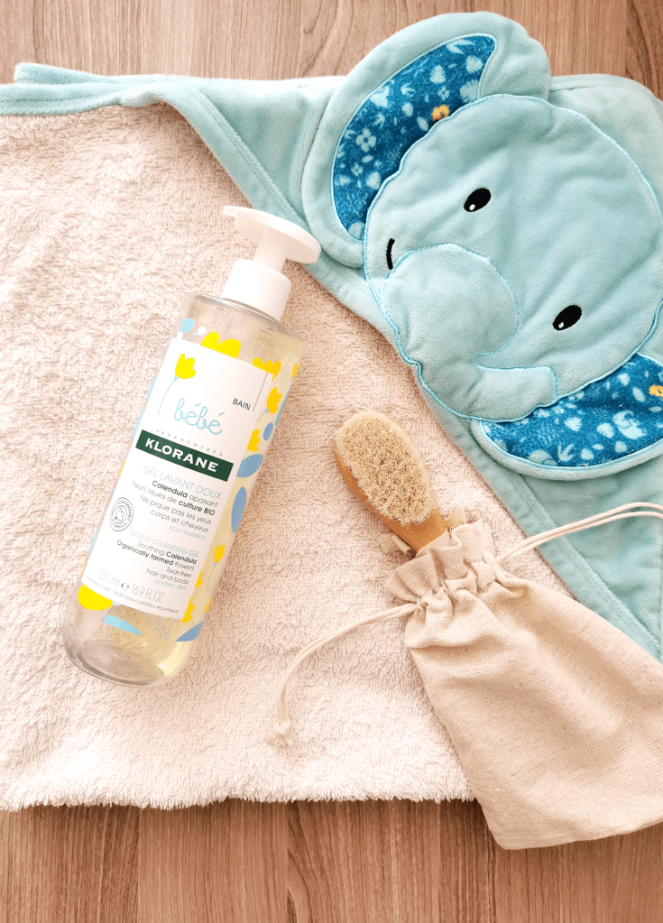 Avant la naissance de ma fille, je pensais déjà a quel produit nous allons utiliser pour le bain étant donné que la peau des bébés est si fragile. De puis, je suis très sensible à la composition des cosmétiques pour bébé, je voulais quelque chose de sain et de très doux. Après plusieurs recherches, je me suis tournée vers les produits de la marque Klorane et j’ai reçu de très bons conseils de la part d’une pharmacienne qui m’a proposé le gel lavant doux au Calendula.
