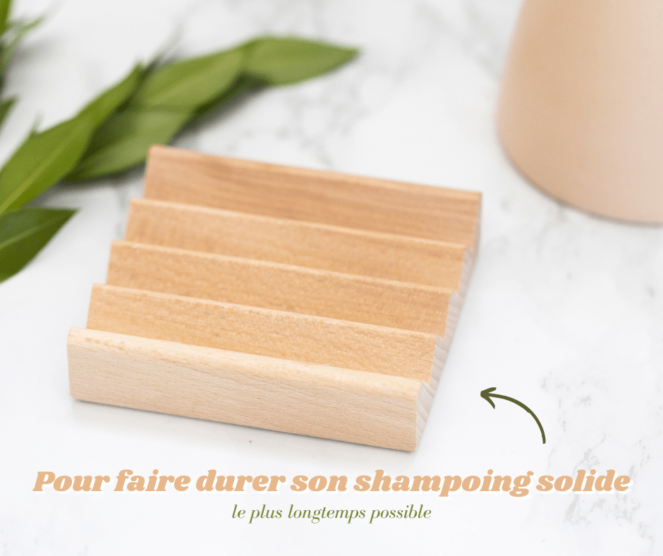 Pour que votre shampoing solide dure le plus longtemps que possible, il est important de bien le faire sécher après chaque utilisation. C’est pourquoi il faut acheter un porte-savon avec des trous ou alors de le réaliser soi-même pour que l’eau puisse s’évacuer correctement.