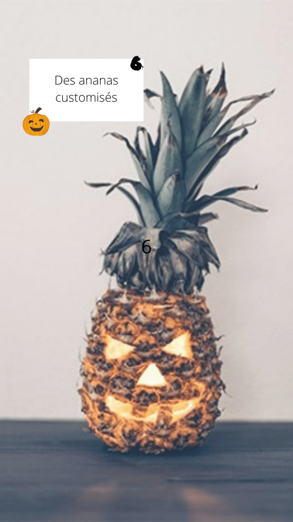 On sort de l’ordinaire et on sculpte un ananas pour Halloween. Au revoir belle citrouille ! Lors d’un dîner d’Halloween, si vous avez envie de proposer des ananas en dessert, cette idée est géniale ! Enfin, il est tout à fait possible de le sculpter et de déposer à l’intérieur une fausse petite bougie pour faire ressortir la tête terrifiante que vous lui aurez crée.