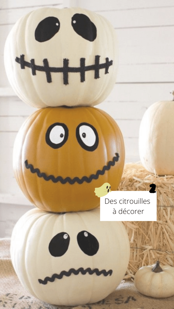 Une décoration trop fun et qui peut vraiment être jolie. De vrai citrouille à décorer soi-même avec un marqueur, des accessoires, du papier. Laissez libre cour à votre imagination. Cette déco peut très bien être mise durant tout l’automne sans aucun problème, mais elle apportera une touche de fantaisie pour Halloween !