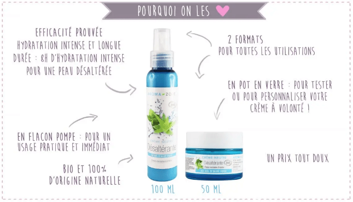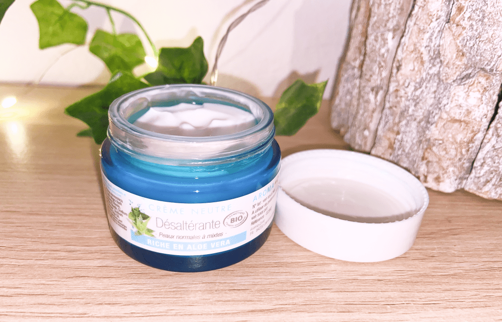 - Troisièmement : Appliquez enfin la crème désaltérante et hydratante Aroma-Zone