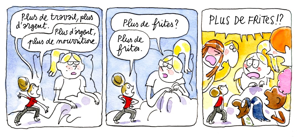 Vous l’aurez compris, c’est un ouvrage original qui aborde des sujets tels que : l’exploitation, le rapport patron-employé, la propriété privée des moyens de production… Mais pas de panique chers parents, ce récit est vraiment raconté de manière intelligente, avec des mots simples et beaucoup d’humour pour que l’enfant comprenne et accroche complètement à l’histoire.